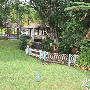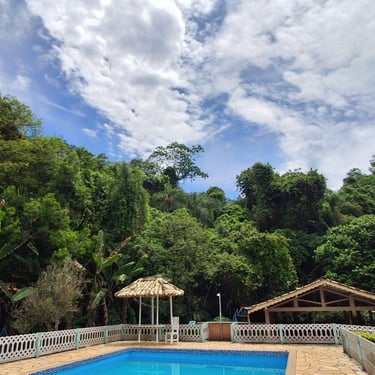 Com 7 mil metros, escritura com registro, perímetro urbano 3 linhas de ônibus asfalto até a porta, poço artesiano, água potável testada. Árvores, jardim, quiosque, piscina, casa grande no terreno.