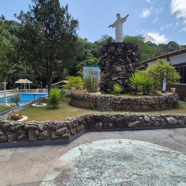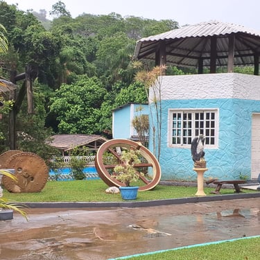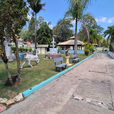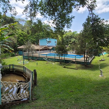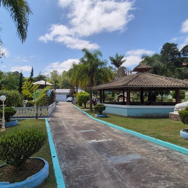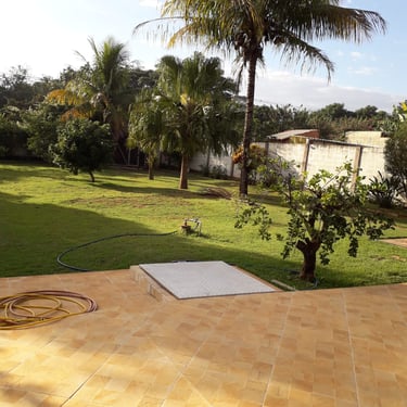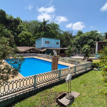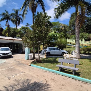 Com 7 mil metros, escritura com registro, perímetro urbano 3 linhas de ônibus asfalto até a porta, poço artesiano, água potável testada. Árvores, jardim, quiosque, piscina, casa grande no terreno.