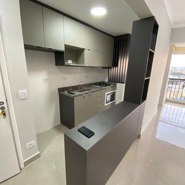 Possui 3 dormitórios, sendo 1 deles suíte, e ambos completos de armários planejados. Ampla sala de estar conjugada com sala de jantar, possui painel e rack para TV, rebaixamento de gesso com spots e lâmpadas de LED; Sacada; Cozinha completa de armários planejados. Ampla área de serviço.
