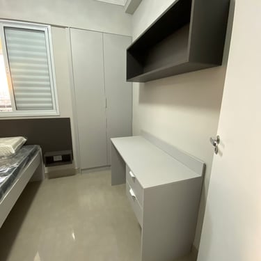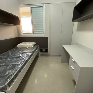 Cozinha e Quartos Planejados: A cozinha e os quartos estão estrategicamente planejados para otimizar cada centímetro do espaço, oferecendo praticidade e beleza em cada detalhe.