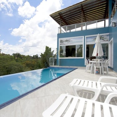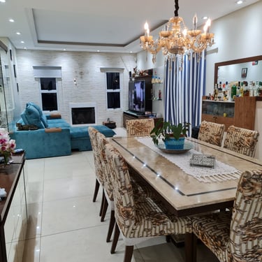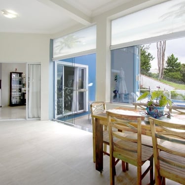 A casa possui Living para 2 amplos ambientes, salas de estar com lareira e tv, sala de jantar, abertas para varanda gourmet e área de piscina com borda infinita e aquecida;