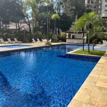 Edifício com área de lazer completa, 2 piscinas e sistema de segurança, em ótima localização. -